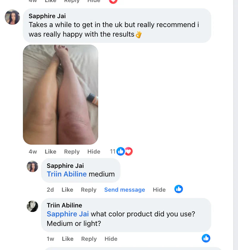 - Self-tanner: Chemical reaction on your skin (you can't control the exact shade)
