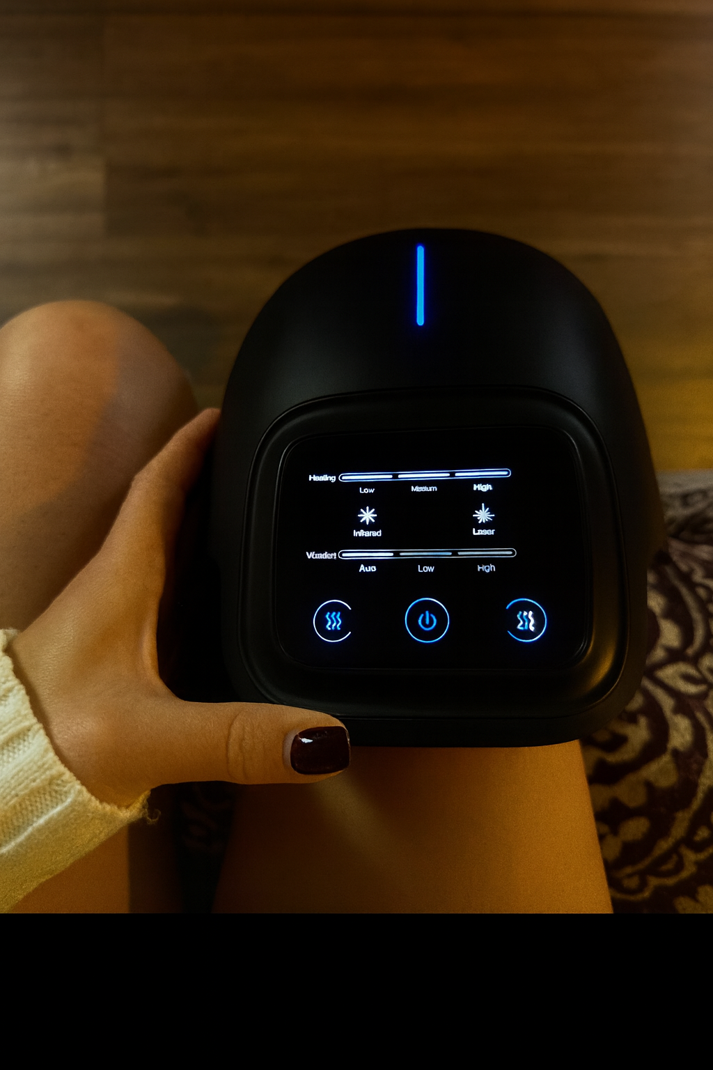 The LEVIDE Knee ULTRA is designed to provide targeted relief and recovery through a combination of infrared therapy, heat therapy, and gentle vibration.